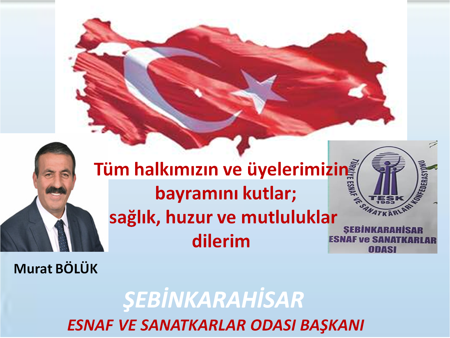 Şebinkarahisar Esnaf ve Sanatkar Odası Başkanı Murat Bölük Kurban Bayramı Dolayısıyla Kutlama Mesajı Yayınladı